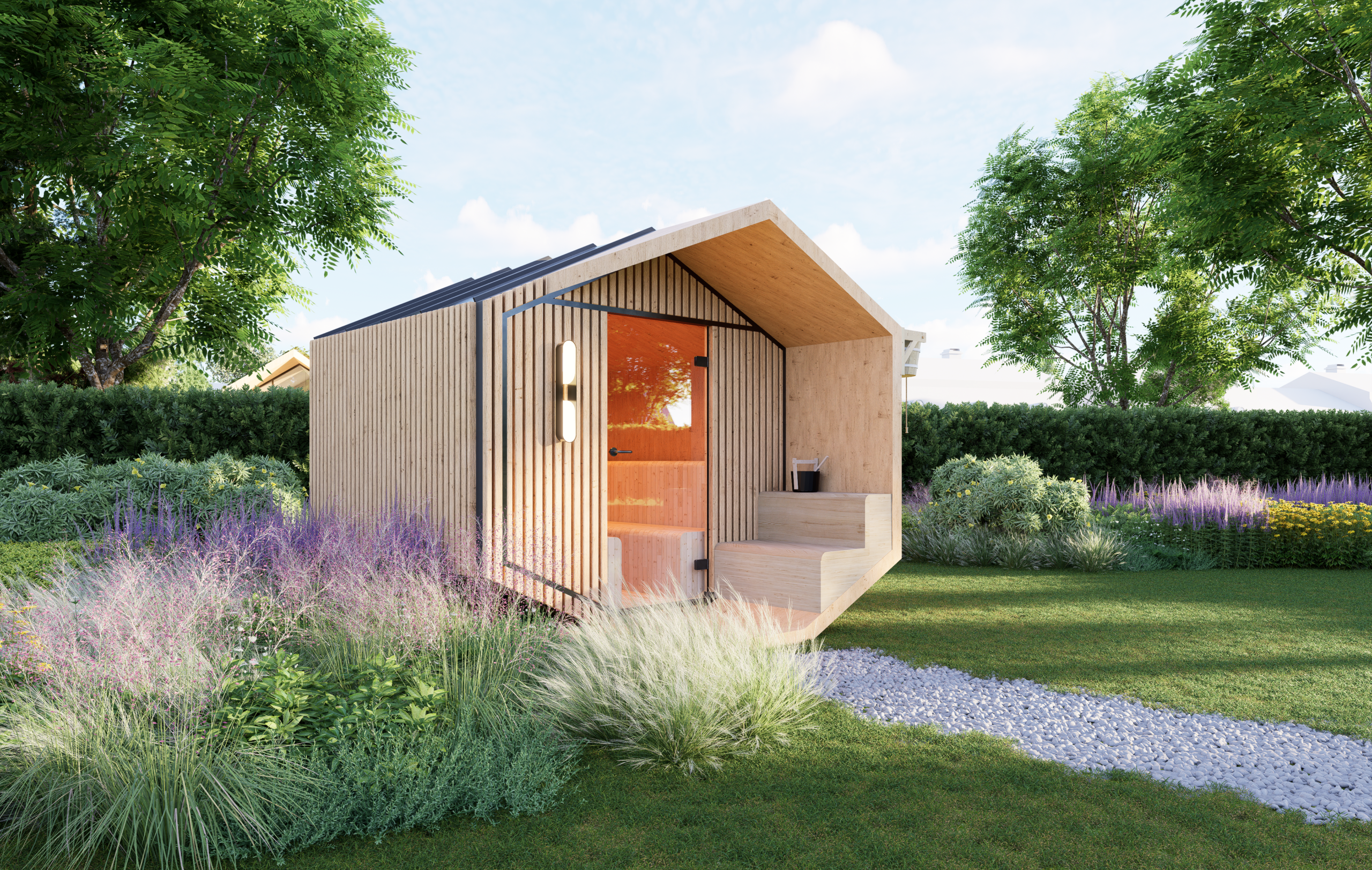Met dezelfde ontwerpfilosofie als onze Hyves creëren we sauna’s die rust brengen door een doordacht design, natuurlijke materialen en een zachte dialoog met het landschap.